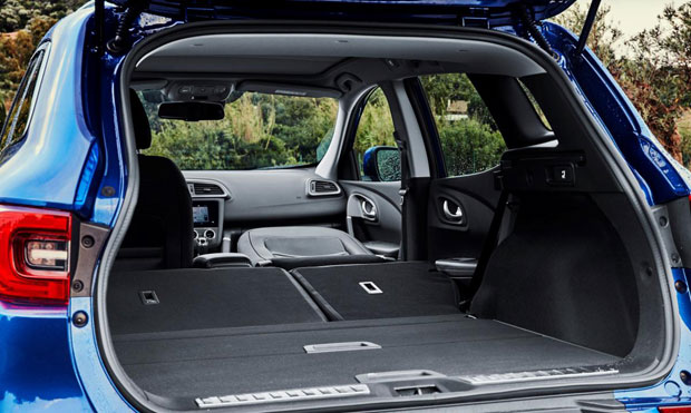 Novi “kađar” ima jedan od najvećih prtljažnika u segmentu zapremine 472 dm3 prema normi VDA (527 litara). Zadnja klupa preklopiva u odnosu 2/3:1/3 jednostavno se preklapa uz pomoć ručica Easy Break smeštenih sa obe strane prtljažnika. Pritom se suvozačevo sedište može preklopiti u potpuno ravnu površinu kako bi omogućilo utovar tereta dužik i od 2,5 metara.