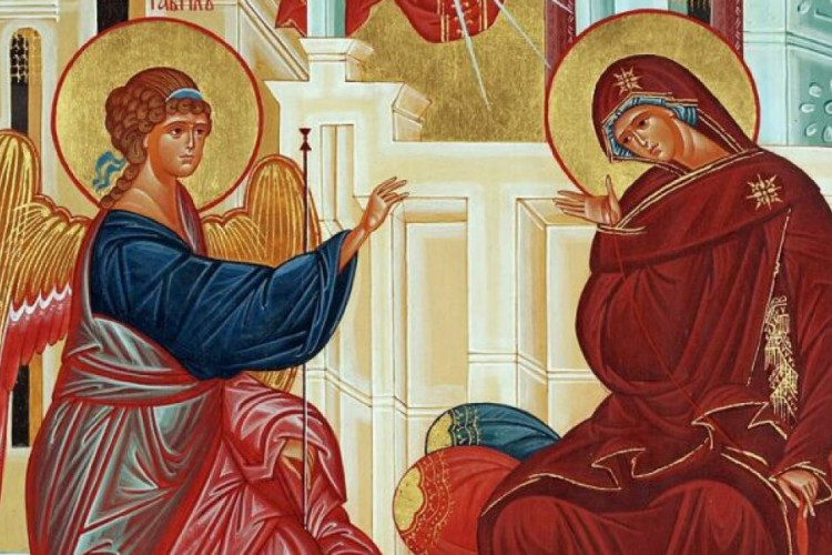 Pola godine pošto je prvosvešteniku Zahariji projavio da će u dubokoj starosti dobiti sina koji će biti Gospodnji Preteča /Sveti Јovan Krstitelj/, Arhanđeo Gavrilo javio se Prečistoj Djevici Mariji u Nazaretu, pozdravivši je riječima: “Raduj se, blagodatna! Gospod je s tobom, blagoslovena si ti među ženama!”