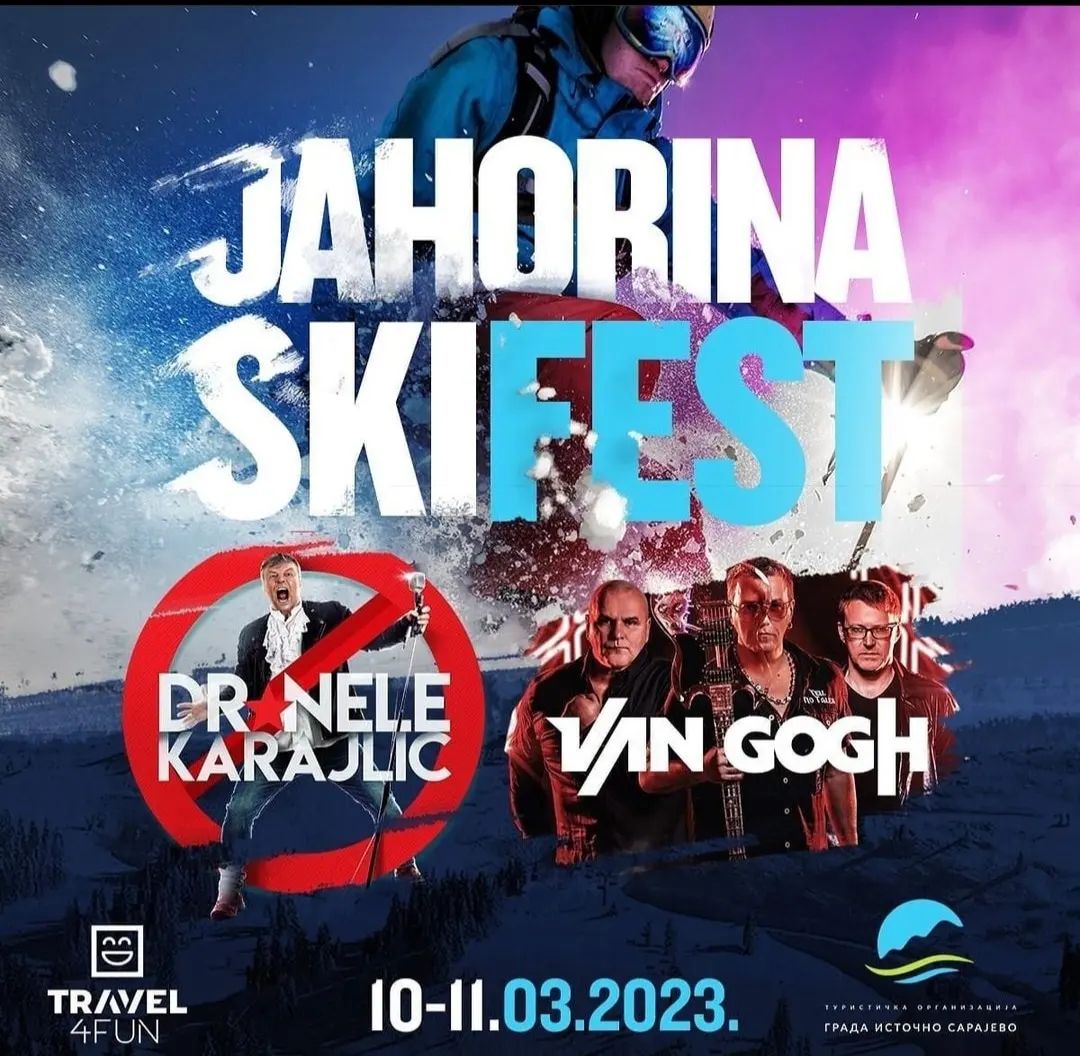 TurizamNele Karajlić i “Van Gog” u martu na “Jahorina SKI festu”admin3 godine agoTurizam488 Festival “Jahorina SKI fest” ove godine po prvi put biće održan na olimpijskoj ljepotici i to 10. i 11....